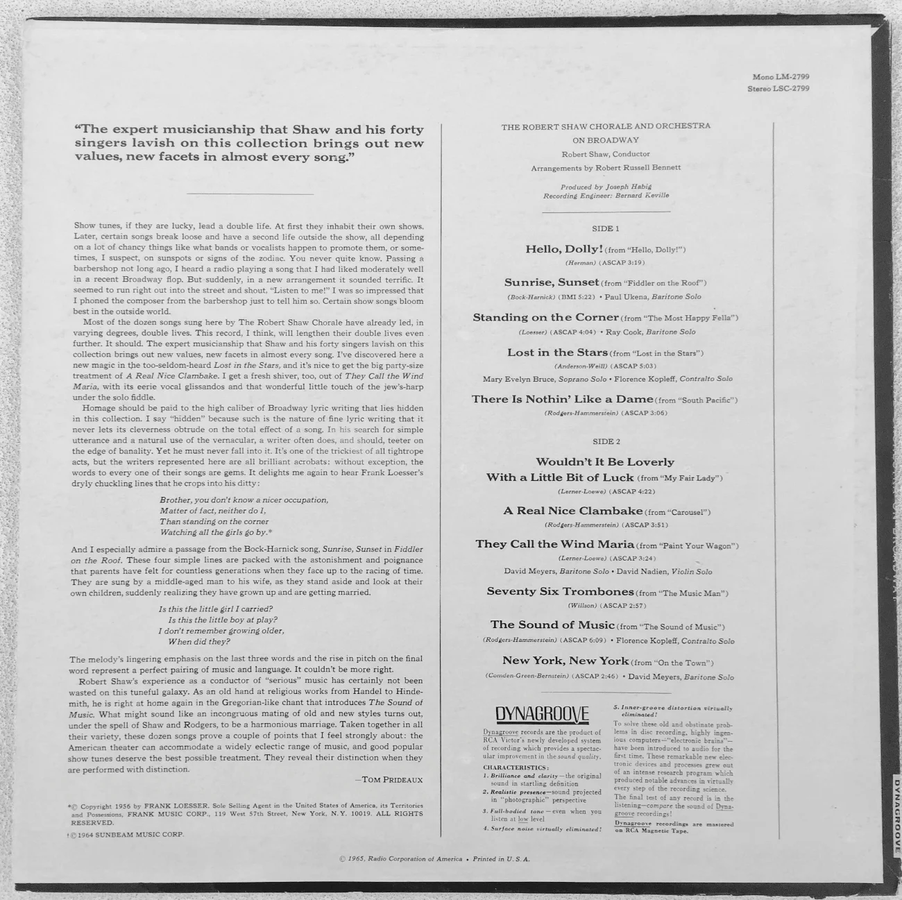 Robert Shaw Chorale on Broadway, Robert Russell Bennett, Arr., 1965